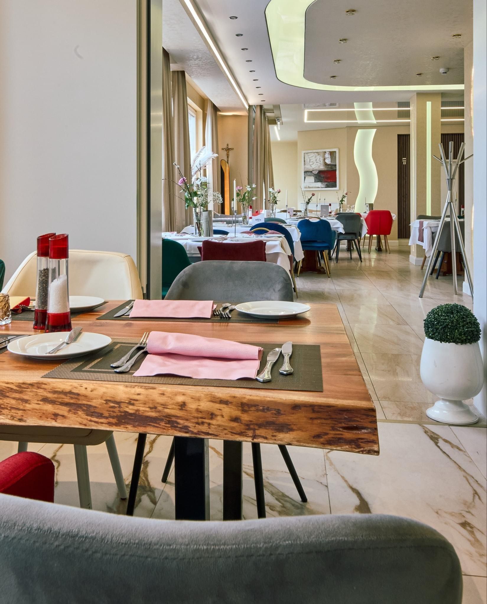 Freuen Sie sich auf ein hochmodernes Ambiente und genießen Sie mediterrane sowie internationale Spezialitäten aus unserer Küche.